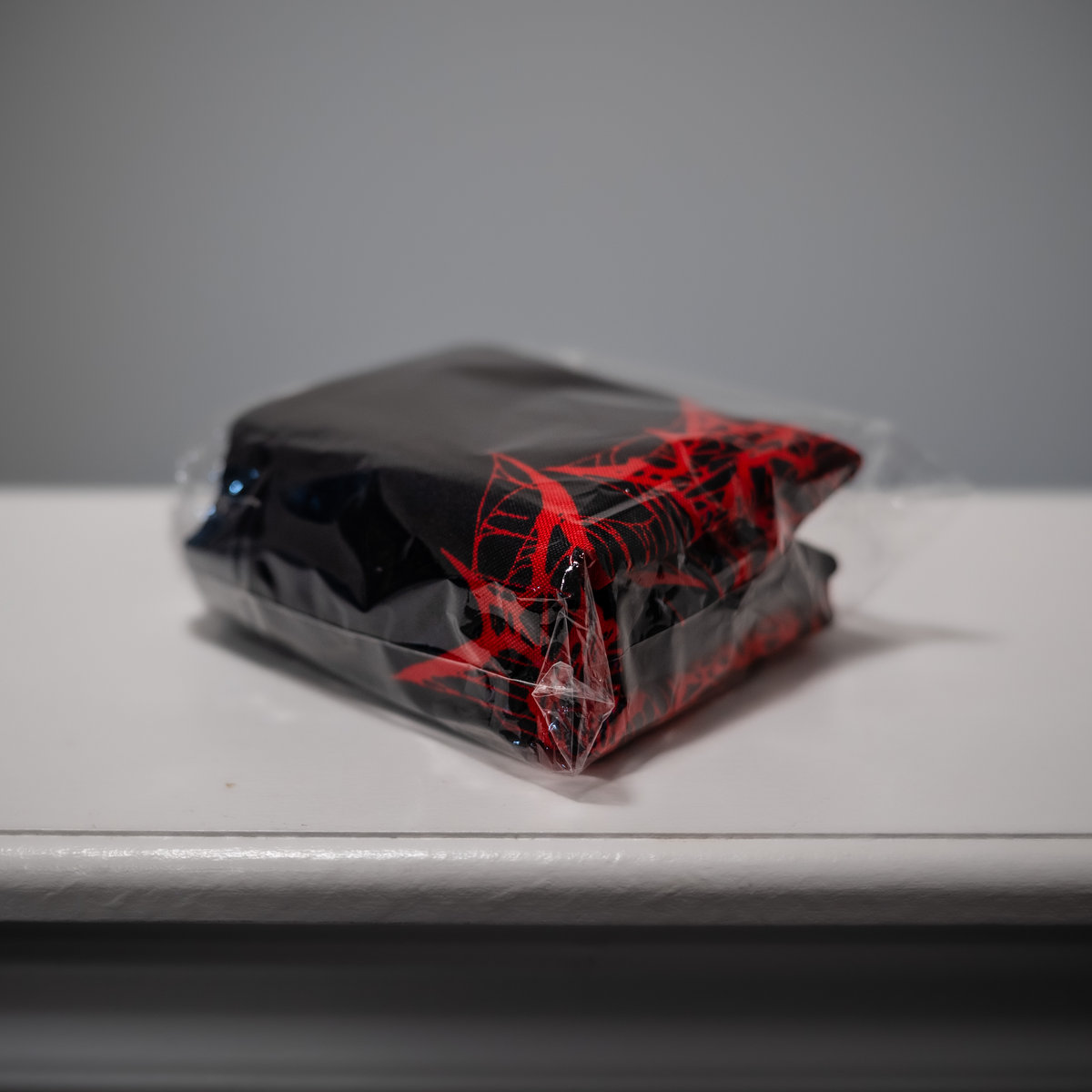 Roughly 47"x30" flag of the Raytraces of Death artwork and red logo.